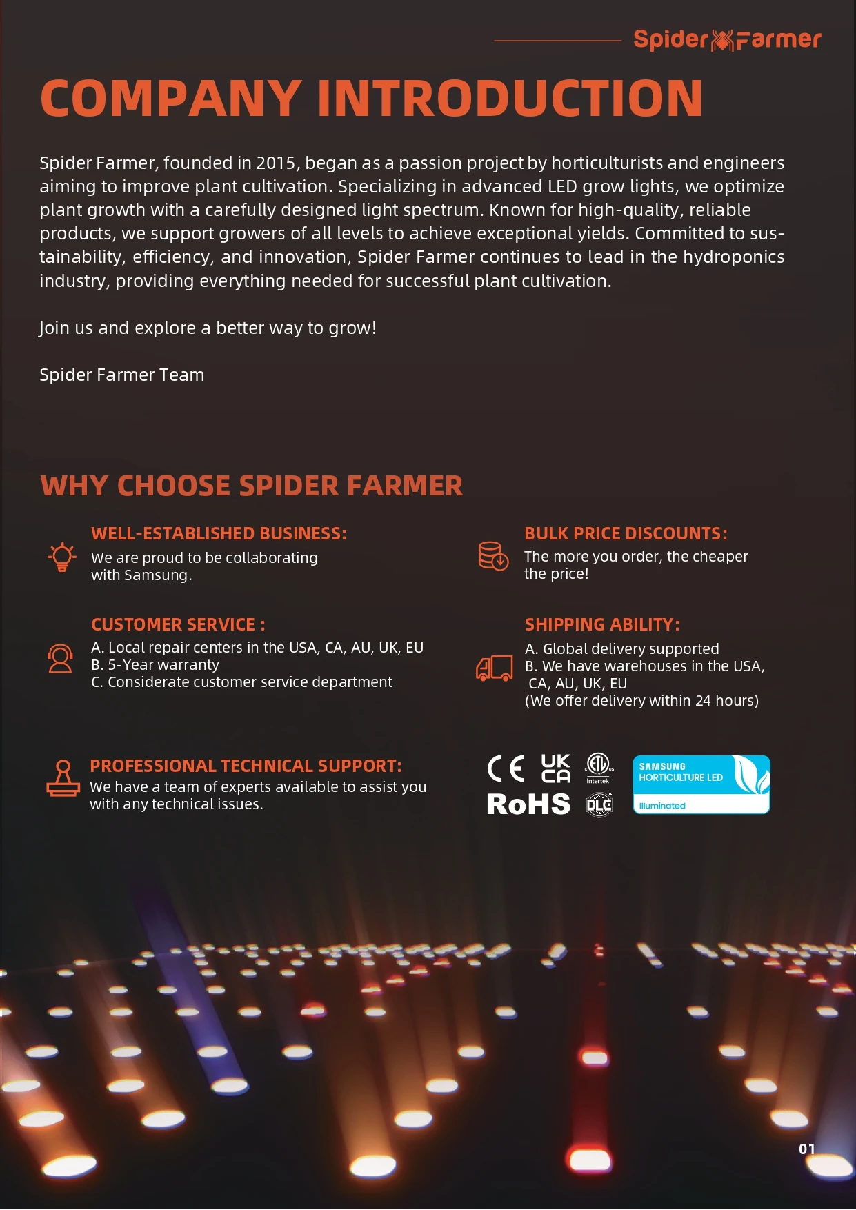* 0-10V Dimming Support: Compatible with the Spider Farmer GGS smart controller, enabling remote dimming control via mobile app for smart operation. Allows dimming control within a 0-10V range to achieve different brightness levels, meeting various light intensity needs of plants.
